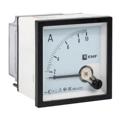 Амперметр AMA-721 аналоговый на панель (72x72) квадратный вырез 10А прямое подкл. EKF