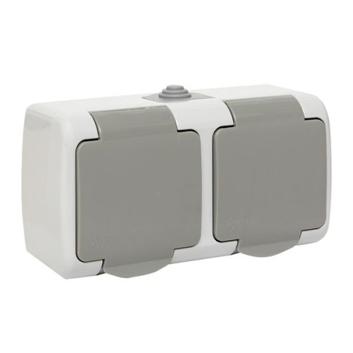 Мурманск Розетка 2-местная 16А с заземлением с крышкой IP54 серый с защитными шторками EKF