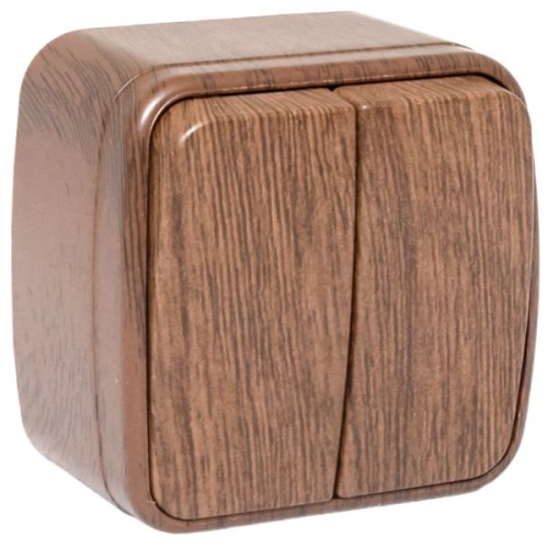 Выключатель 2-клавишный ОП Минск 10А тёмное дерево EKF