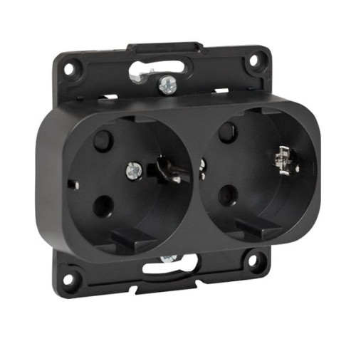 Стокгольм Механизм Розетки 2-местной с/з 16А автоматические клеммы черный с защ. штор. EKF PROxima