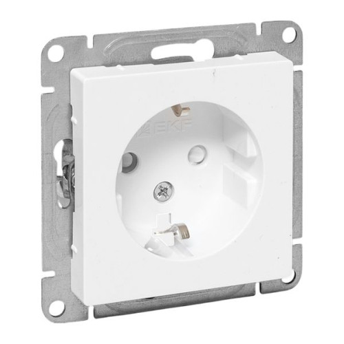 Механизм розетки, 16А, с заземлением, со шторками, белый Эпика EKF