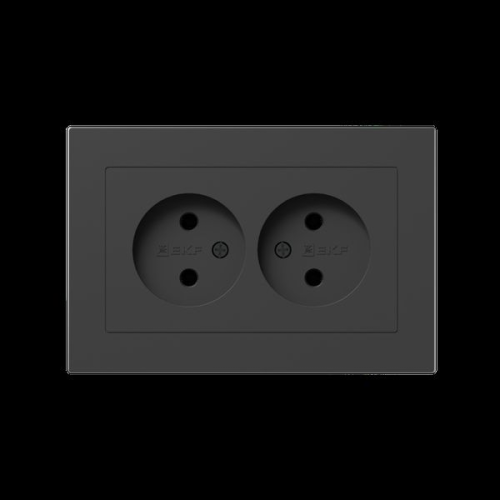 Механизм розетки двойной, 16А, без заземления, без шторок, с рамкой, чёрный Эпика EKF
