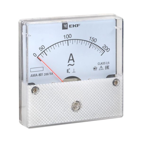 Амперметр AMA-801 аналоговый на панель (80x80) круглый вырез 200А трансф. подкл. EKF