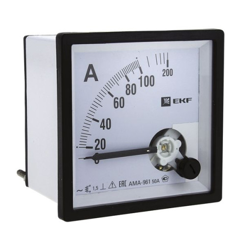 Аналоговые электроизмерительные амперметры торговой марки EKF™ предназначены для измерения силы тока в электрических цепях переменного тока. Приборы применяются для работы в закрытых помещениях, в электрощитовом оборудовании, в электроустановках промышленных предприятий, жилых, общественных зданий и сооружений. Амперметры устанавливаются на панель щита (квадратный и круглый вырезы). Размеры лицевых панелей приборов: 72 х 72, 80 х 80 и 96 х 96