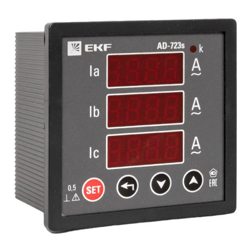 Амперметр AD-723s цифровой на панель 72x72 (квадратный вырез) трехфазный в коротком корпусе EKF PROxima