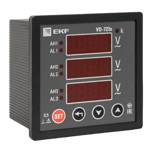 Вольтметр VD-723s цифровой на панель 72x72 (квадратный вырез) трехфазный в коротком корпусе EKF PROxima