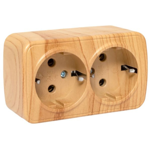 Розетка 2-местная ОП Минск 16А с заземлением светлое дерево EKF