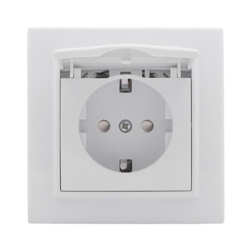 Минск Розетка 1-местная СП с заземлением и крышкой 16А белая с защ. штор. EKF Basic