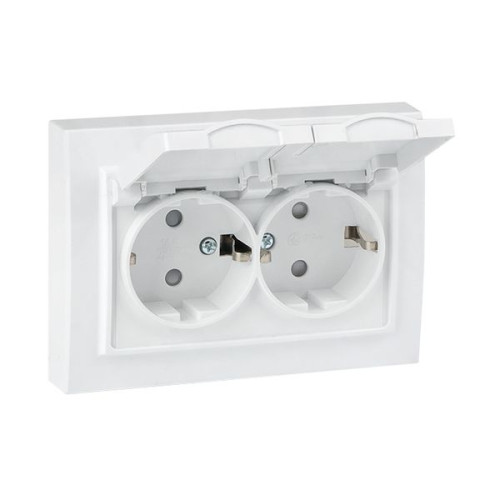 Минск Розетка 2-местная СП с/з с крышкой 16А белая с защ. штор. IP44 EKF