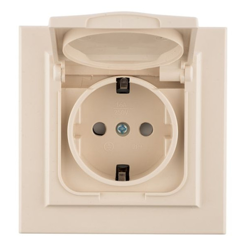 Минск Розетка 1-местная СП с/з с крышкой 16А бежевая с защ. штор. IP44 EKF
