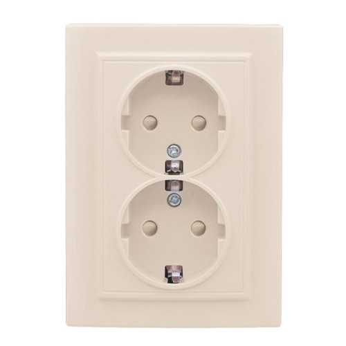 Розетка 2-мест. СП с/з 16А бежевый с защ. штор. Минск EKF