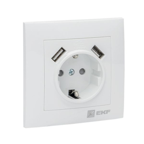 Валенсия розетка 1-местная с/з 16А белая с защ. штор. с 2 USB 2,1А EKF PROxima