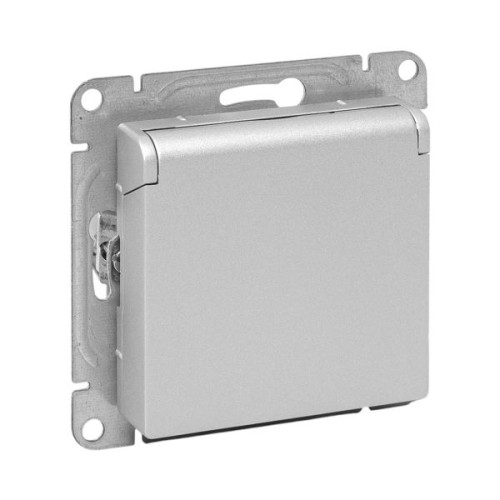 Механизм розетки, 16А, IP44, с заземлением, со шторками, c крышкой, алюминий Эпика EKF