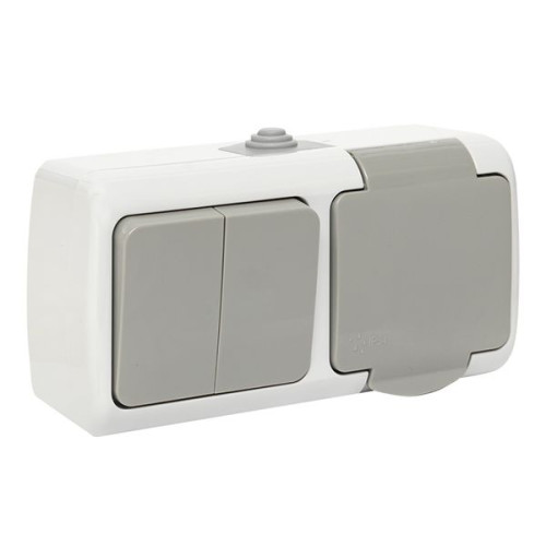 Мурманск Блок розетка 1-м 16А с заземлением с крышкой + 2-кл выключатель IP54 серый EKF