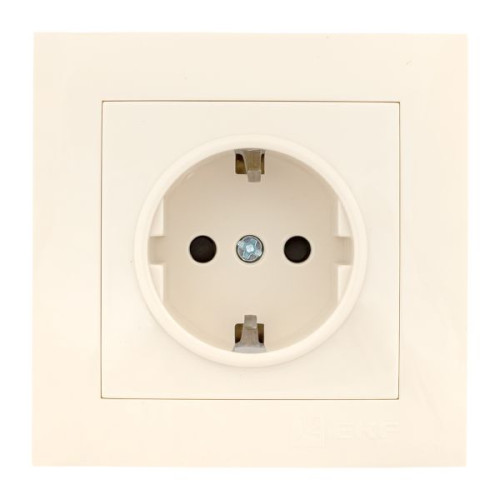 Валенсия розетка 1-местная с/з 16А кремовая с защ. штор. EKF PROxima
