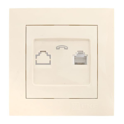 Валенсия розетка телефонная RJ-11 1-местная кремовая EKF PROxima