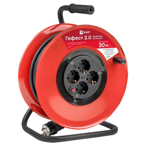 Удлинитель на катушке "Гефест 2.0" 4 гнезда 30м с заземлением и предохранителем КГхл 3*1,5 16А/3,5кВт PROxima