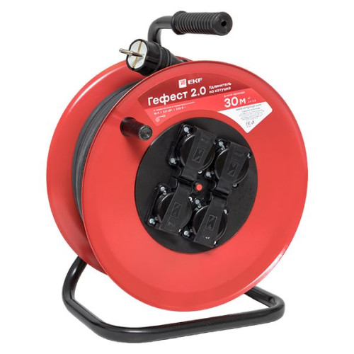 Удлинитель на катушке "Гефест 2.0" 4 гнезда 30м с заземлением и предохранителем КГхл 3*2,5 16А/3,5кВт IP44 PROxima